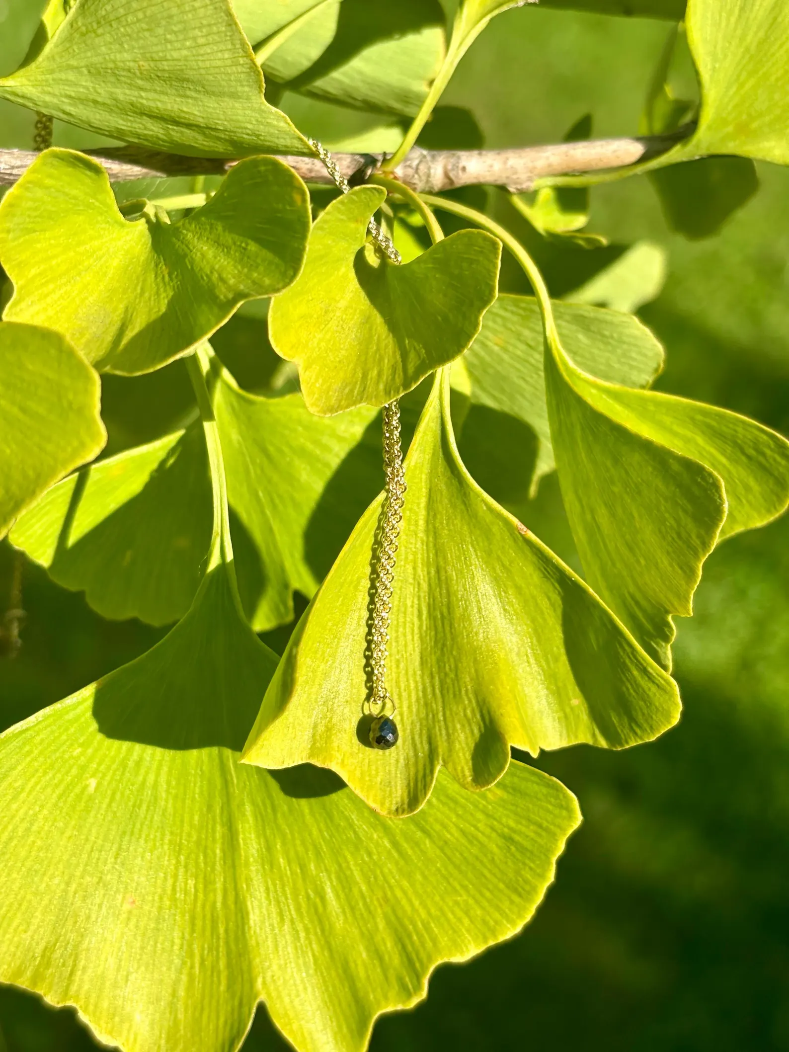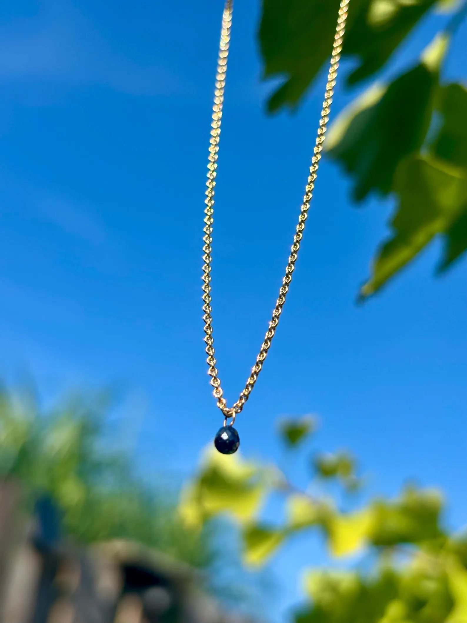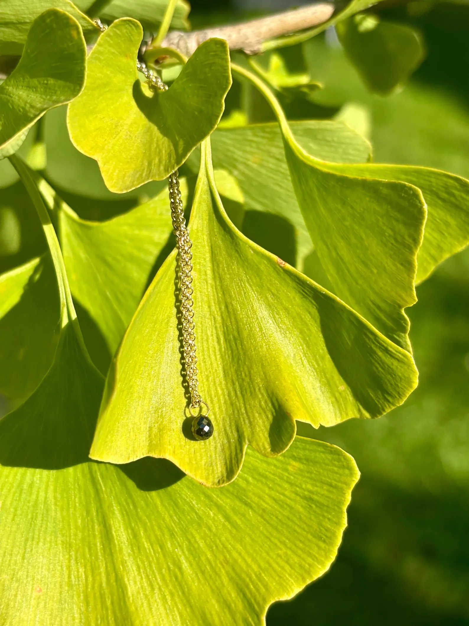 Viel braucht es hier nicht zu sagen.. ein kleiner facettierter, schwarzer Dianant… an einer Öse… aufgefädelt auf eine 585 Gelbgold Kette…. diese hat eine Länge von 40 cm.