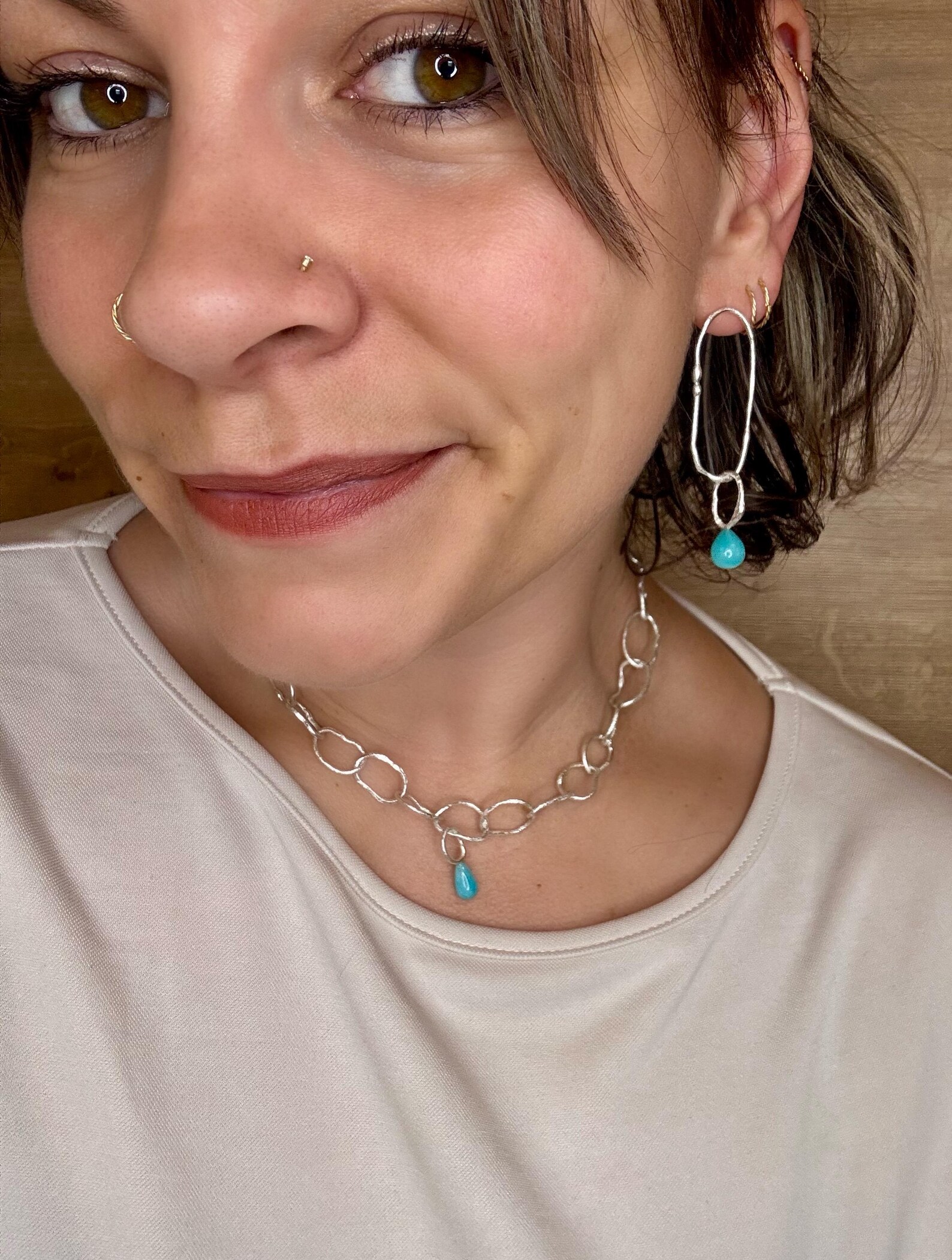 Der Stil spiegelt sich in beiden wieder und ein kleiner Amazonit ist eingearbeitet.