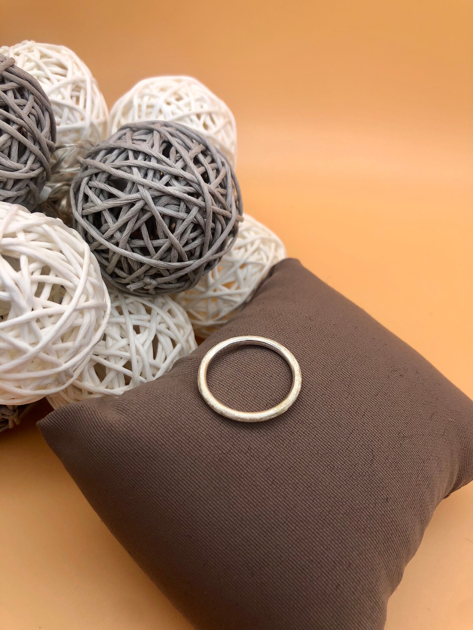 Der Ring ist aus Silber geschmiedet und die Oberfläche eismatt.