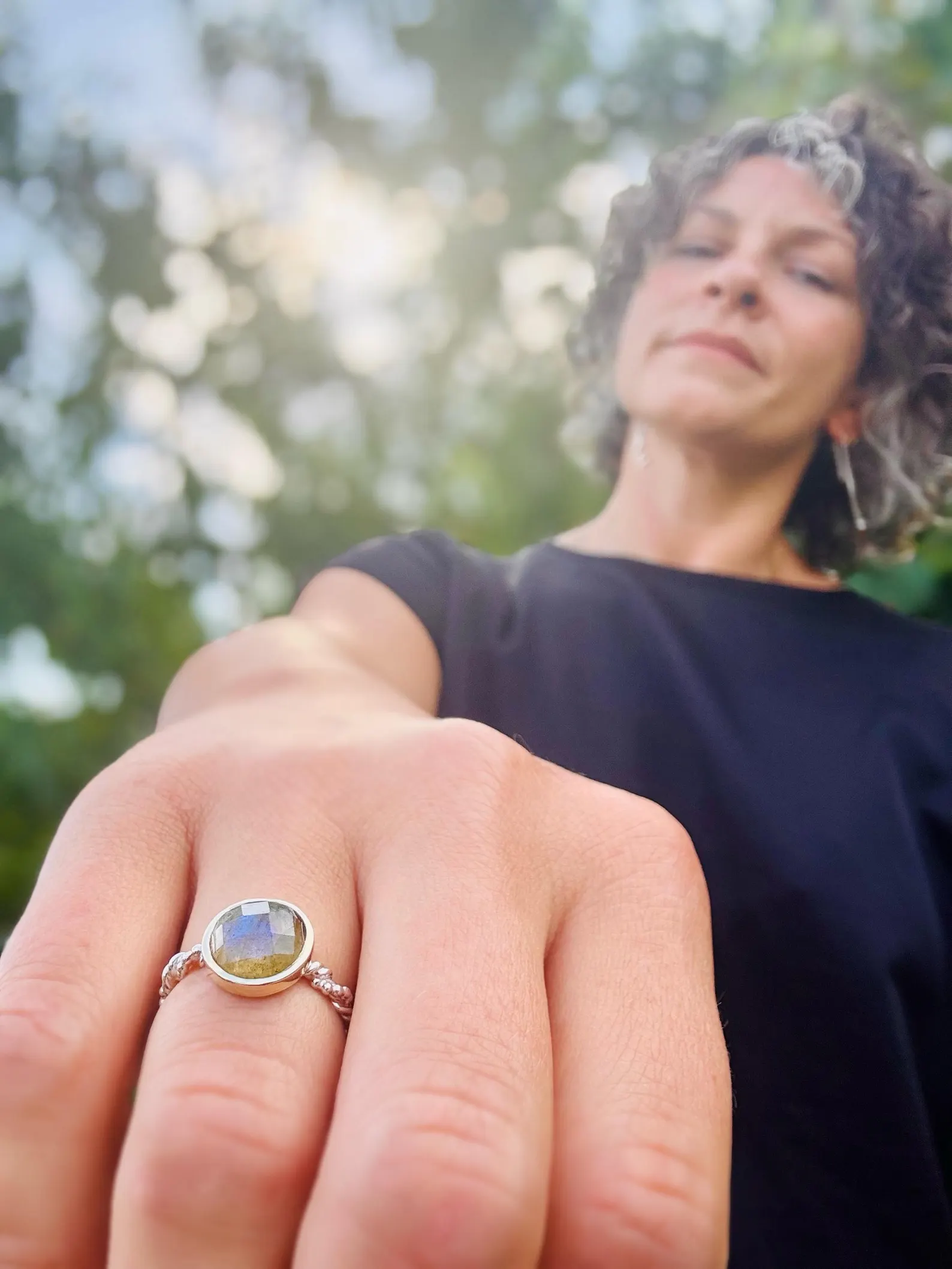 Der Labradorit.. im wunderschönen Rosenschliff… ist in 333er Gelbhold eingefasst.